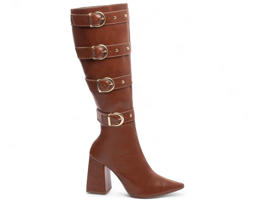 Salto: 9 cm de Altura e Revestido em Napa na cor Preto e Caramelo;