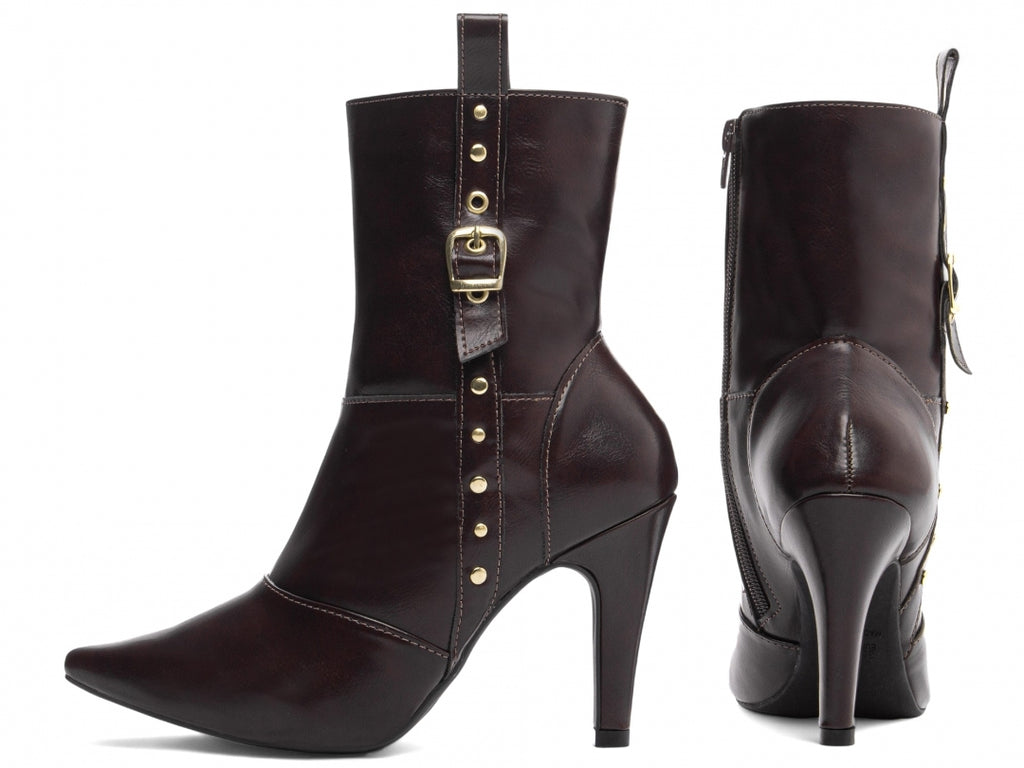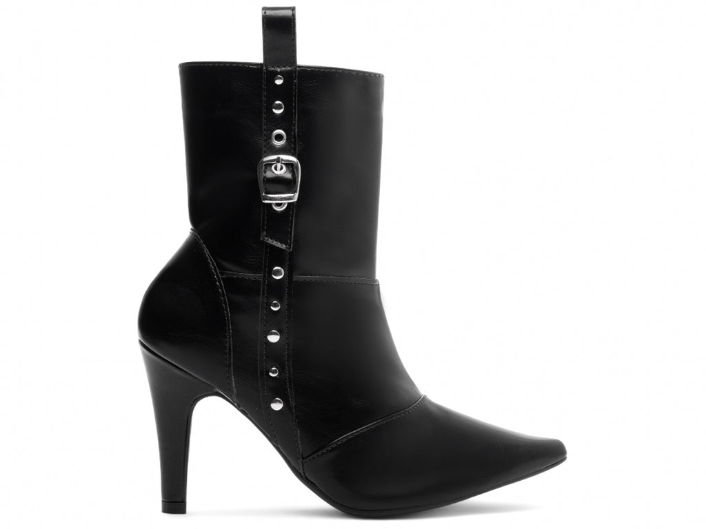 Material: Napa;Enfeites: Zíper, Fivelas e Apliques na Cor Prata;Palmilha: 8 mm de Espessura, Espuma em EVA, e Taloneira em Napa;Forro: Cacharrel, material espumado para maior conforto;Salto: 9 cm de Altura e Revestido em Napa;Solado de TR.