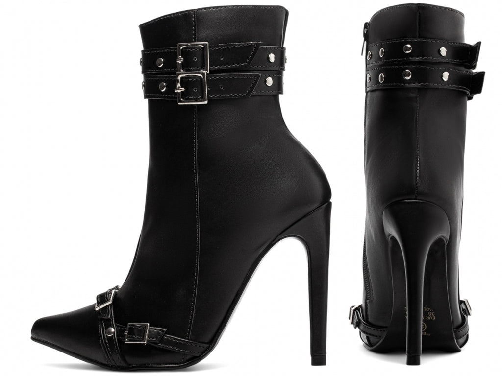 Bota cano médio - Detalhes em apliques - Salto alto, fino 12 cm/Feminino