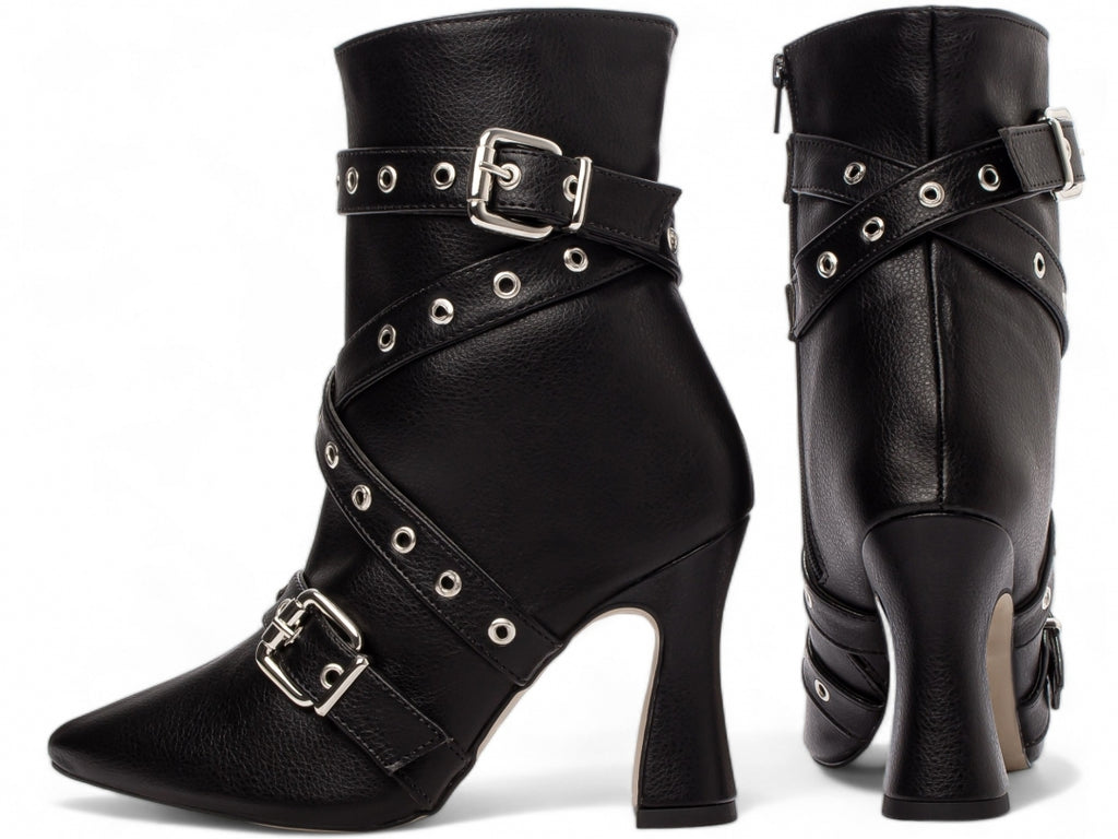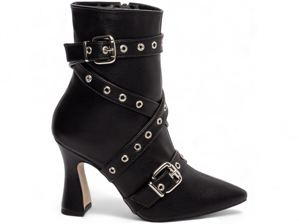 Enfeites: Zíper na Cor Preto (lateral interna) fivelas e ilhós na cor Prata;