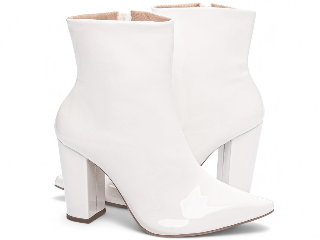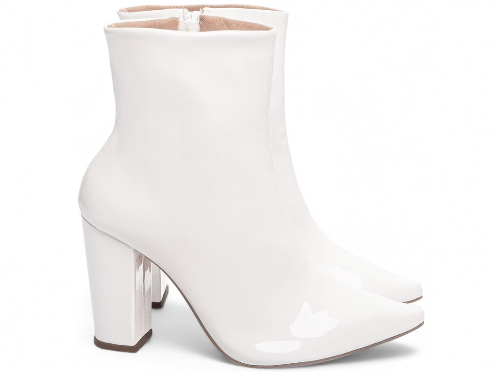 Material: Verniz;Enfeites: Zíper (lateral interna);Palmilha: 8 mm de Espessura, Espuma em EVA, e Taloneira em Napa;Forro: Cacharrel, material espumado para maior conforto;Salto: 9 cm de Altura encapado;Solado de PVC.