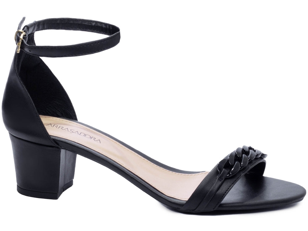 Sandália tamanho grande - Detalhe em corrente - Salto bloco, baixo 5,5 cm/Feminino