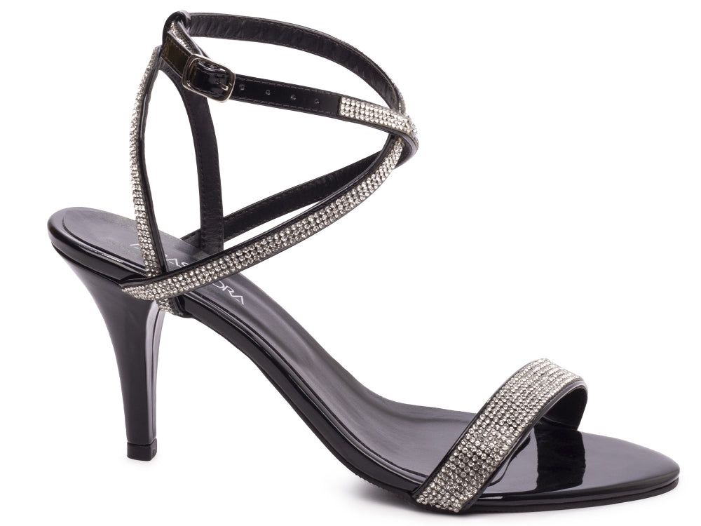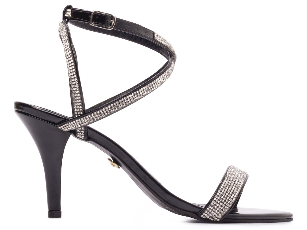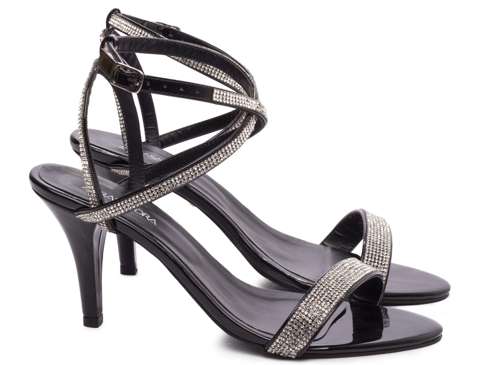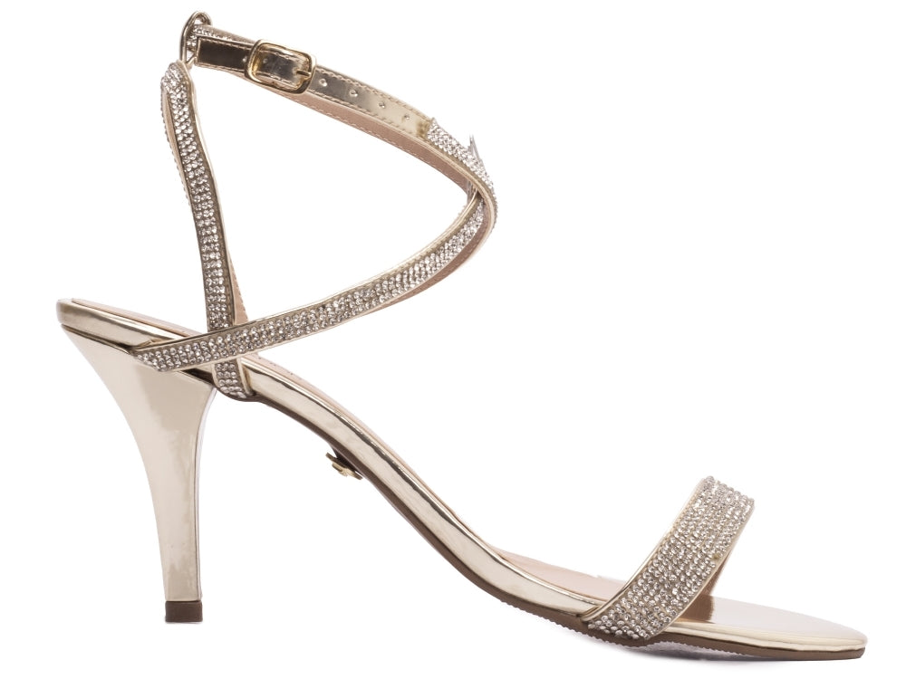 Sandália tamanho grande - Metalizado - Manta de strass - Salto fino, alto 9,5 cm/ Feminino