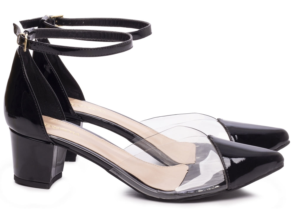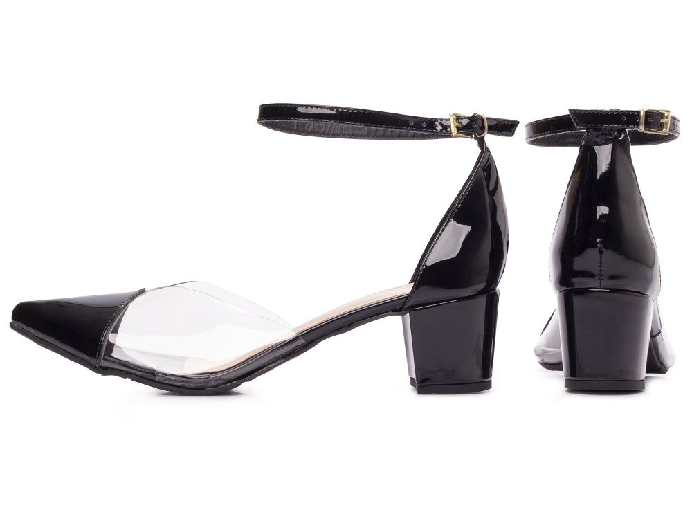 Scarpin tamanho grande - Vinil - Salto baixo, bloco 5,5 cm/Feminino