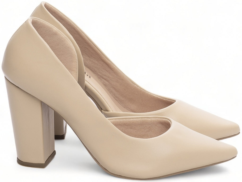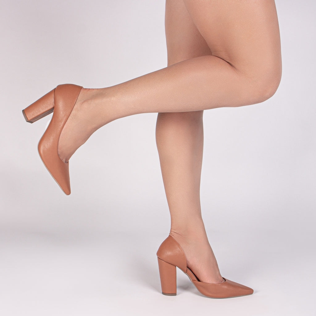 Material: Napa;Palmilha: com 8 mm de Espessura, Espuma em EVA, Revestida com Napa e Taloneira Napa;Forro: Cacharrel, material espumado para maior conforto;Salto: 8,5 cm de Altura encapado em Napa;Solado de PVC antiderrapante.
