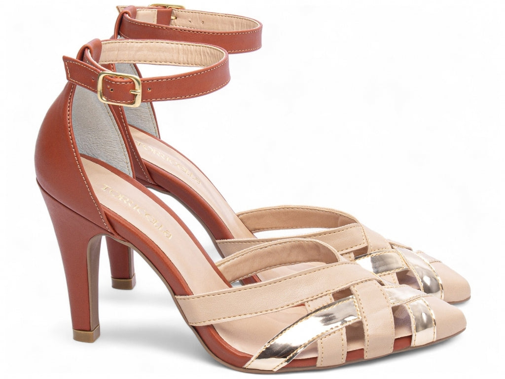 Material: Napa e Nobuck;Enfeite: Fivela de ajuste na cor Dourado;Forro: Napa;Palmilha: 8 mm de Espessura, Espuma em EVA Revestida em Napa e Taloneira Napa;Salto: Fino com 9 cm de Altura Revestido em Napa;Solado de PVC com antiderrapante.