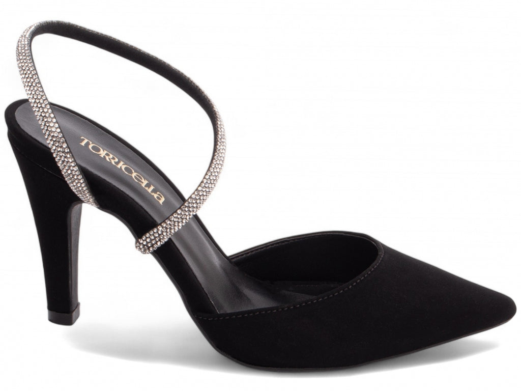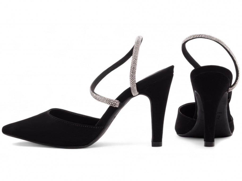 Material: Nobuck Preto / Manta de Strass na cor Prata;