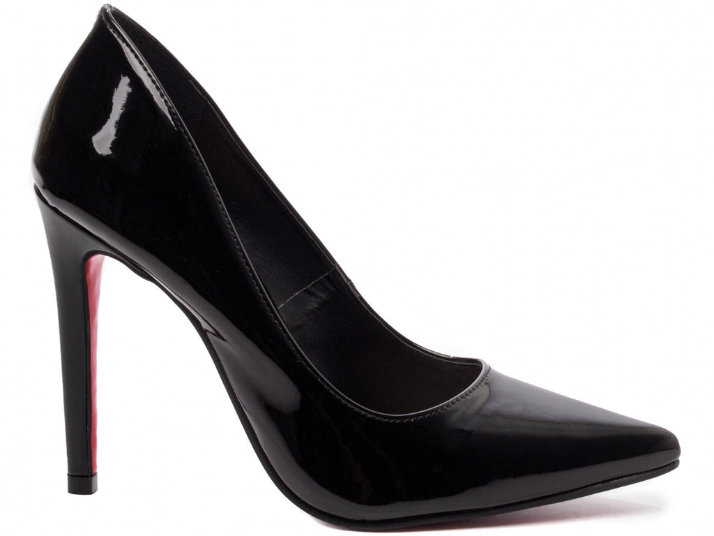 Material: Verniz Preto;Palmilha: 8 mm de Espessura, Espuma em EVA, Revestida em Verniz Preto e Taloneira Napa Bege;Salto: 12 cm de Altura Revestido em Verniz Preto;Solado de Micro na cor Vermelho.