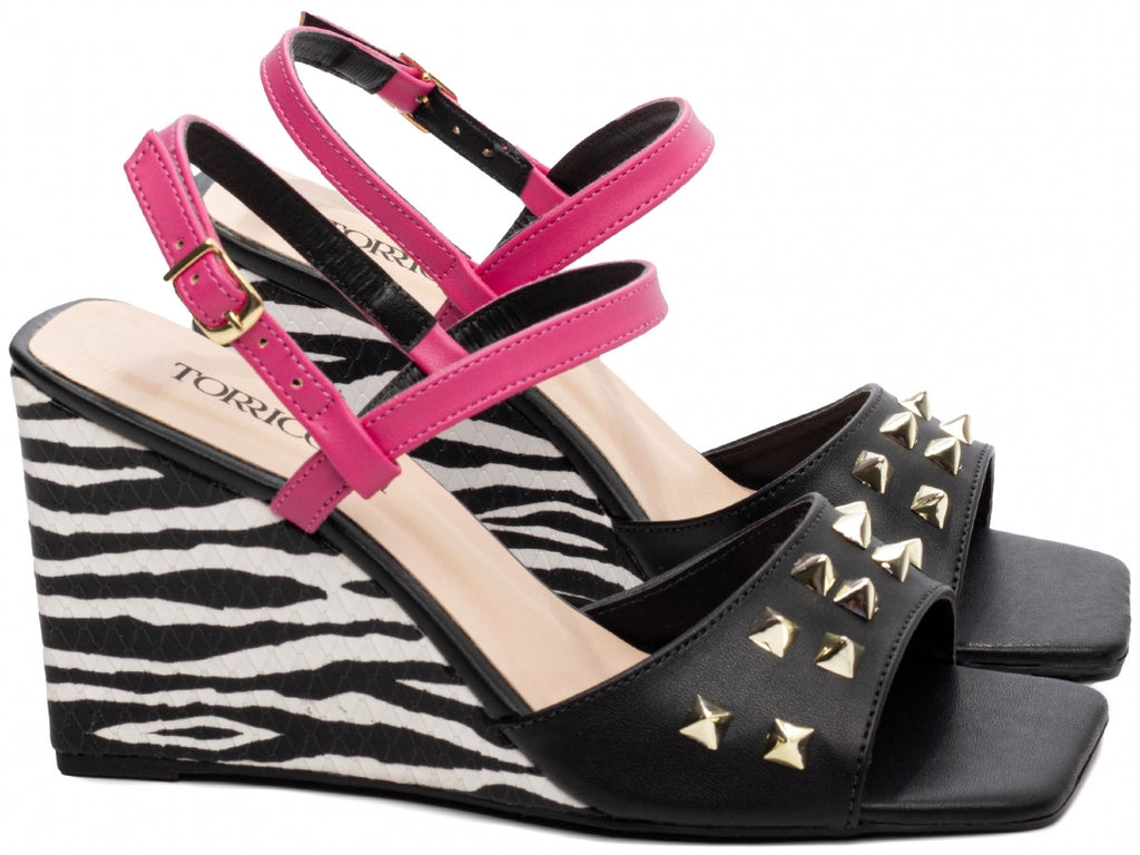 Plataforma: Traseiro / Salto com 9 cm de Altura, Revestido em Napa nas cores Preto e Branco;