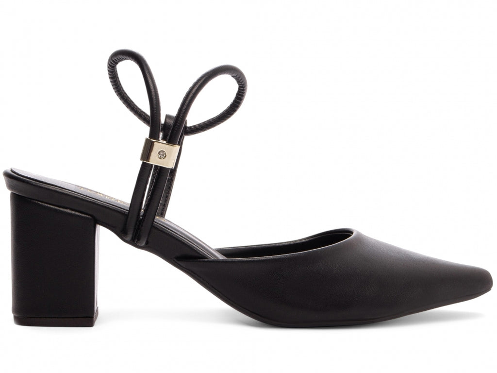Material: Napa;Enfeite: Peça em ABS para ajuste;Palmilha: 8 mm de Espessura, Espuma em EVA, Revestida em Napa e Taloneira Napa;Forro: Napa;Salto: 6 cm de Altura encapado em Napa;Solado de PVC antiderrapante.