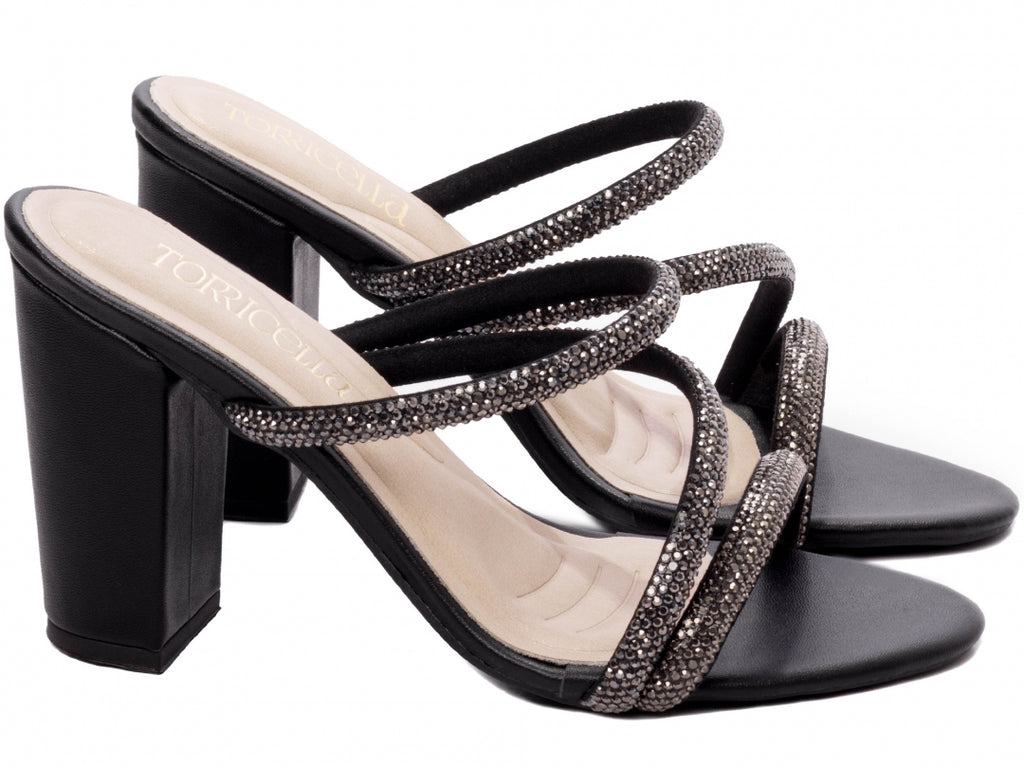 Material: Napa Preto / Manta de Strass na cor Grafite;